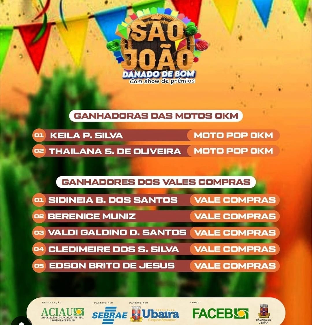 Parabéns aos ganhadores, parabéns comércio de Ubaíra por essa linda festa, até a próxima.